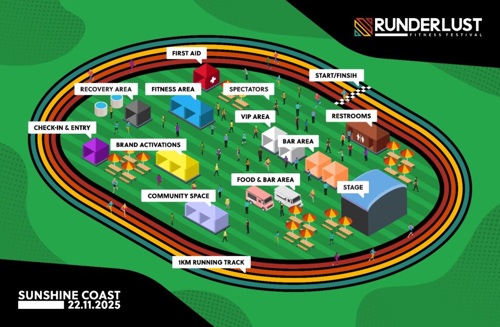 Runderlust is Australia’s first fitness festival like no other. Run as far as you like on a 1km loop track over 4 hours, solo or with your crew, take on epic fitness challenges and vibe to live music and DJ sets. It all ends with a party under the stars that celebrates fitness, community, and good vibes.